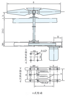 三、空冷器風(fēng)機(jī)傳動(dòng)方式及安裝結(jié)構(gòu)尺寸
