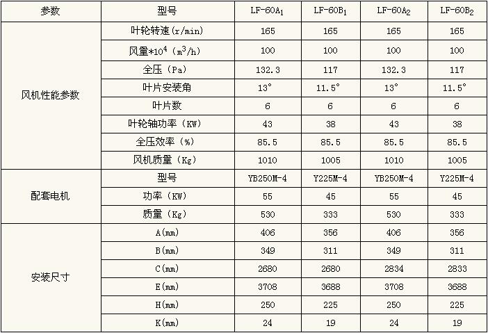 LF-60風機風機性能參數(shù)一覽表